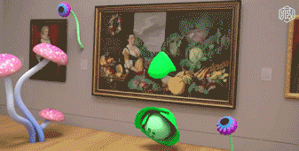 這些既魔性又可愛(ài)的動(dòng)畫(huà)都是出自動(dòng)畫(huà)師Jack Sachs之手。通過(guò)俏皮、可愛(ài)和互動(dòng)的新媒體方式,吸引更多的年輕人來(lái)感受藝術(shù),增加他們對藝術(shù)的興趣。令人沒(méi)有想到的是,高端的藝術(shù)空間遇上一群魔性的怪物,卻是意外的和諧感。